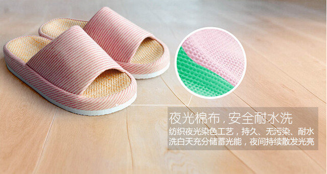 這款鞋子,采用夜光棉布,白天可以儲存光能,到了晚上能開啟柔和的亮光,這種光線非常柔和,不會影響你睡眠,還能夠讓你半夜起來,一眼看見拖鞋在哪。
